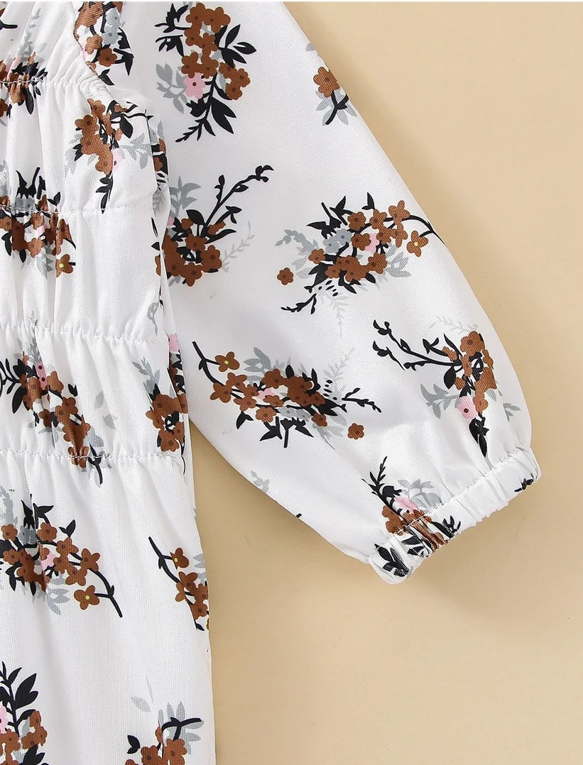 Toddler Floral Printed Bowknot Ruffled Sleeve 2 in 1 Dress with Handband